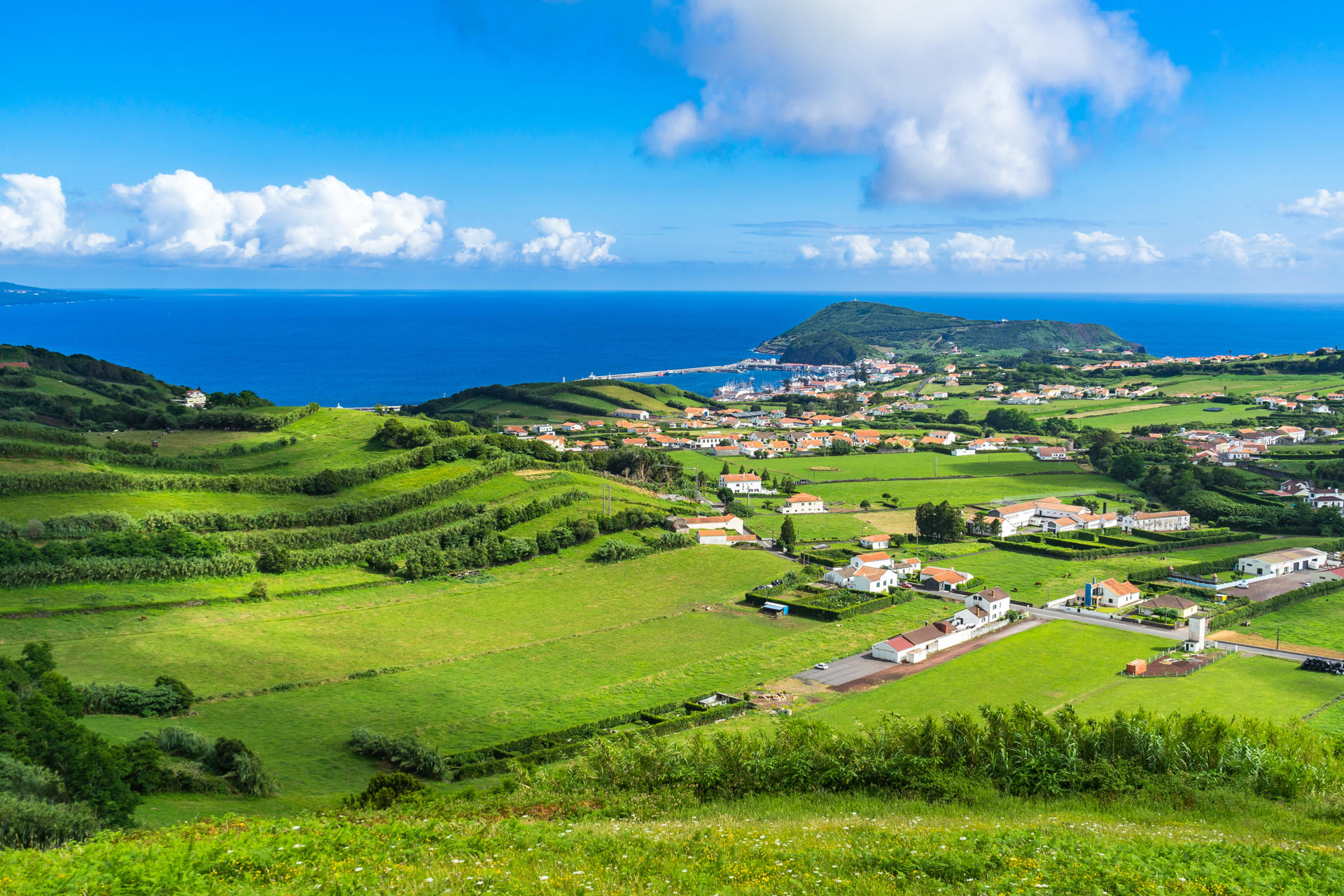 Pequeno-almoço buffet no hotel. Em hora a combinar transporte privativo para o aeroporto do Pico. Formalidades de embarque e partida em voo da SATA Air Açores, com destino ao aeroporto das Lajes, na Ilha Terceira. Desembarque assistido pelo guia local da Nortravel, seguido de almoço com bebidas incluídas em restaurante local. De tarde, início do circuito, em direção à cidade da Praia da Vitória, para visita à cidade e miradouro panorâmico sobre toda a zona. Passagem pelas freguesias do Ramo Grande e localidade das Quatro Ribeiras, um dos primeiros povoados da ilha, junto da sua Igreja e Império do Espírito Santo (exterior). Na freguesia dos Biscoitos, poderá apreciar-se a zona vitivinícola (paragem na região onde as vinhas crescem dentro de “curraletas”), bem como as piscinas naturais. Através das verdejantes pastagens do interior da ilha, passagem pela zona de ganadarias, “tentaderos” e descida para a costa sul, em direção a Angra do Heroísmo. Alojamento no hotel, onde será servido o jantar com bebidas incluídas.